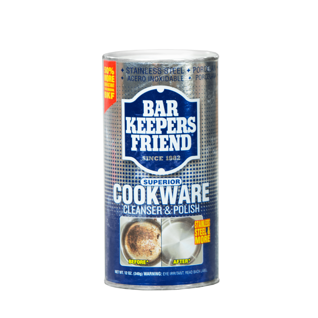 Fabricado para eliminar la grasa quemada y otras manchas,Bar Keepers Friend Cookware Cleanser & Polish contiene 50% más detergents corta grasa que el resto de nuestros limpiadores. Nuestro Cookware Cleanser puede remover manchas en recipientes y utensilios de vidrio, ceramica, acero inoxidable, ollas de hierro recubiertas de porcelana esmaltada y otros utensilios.